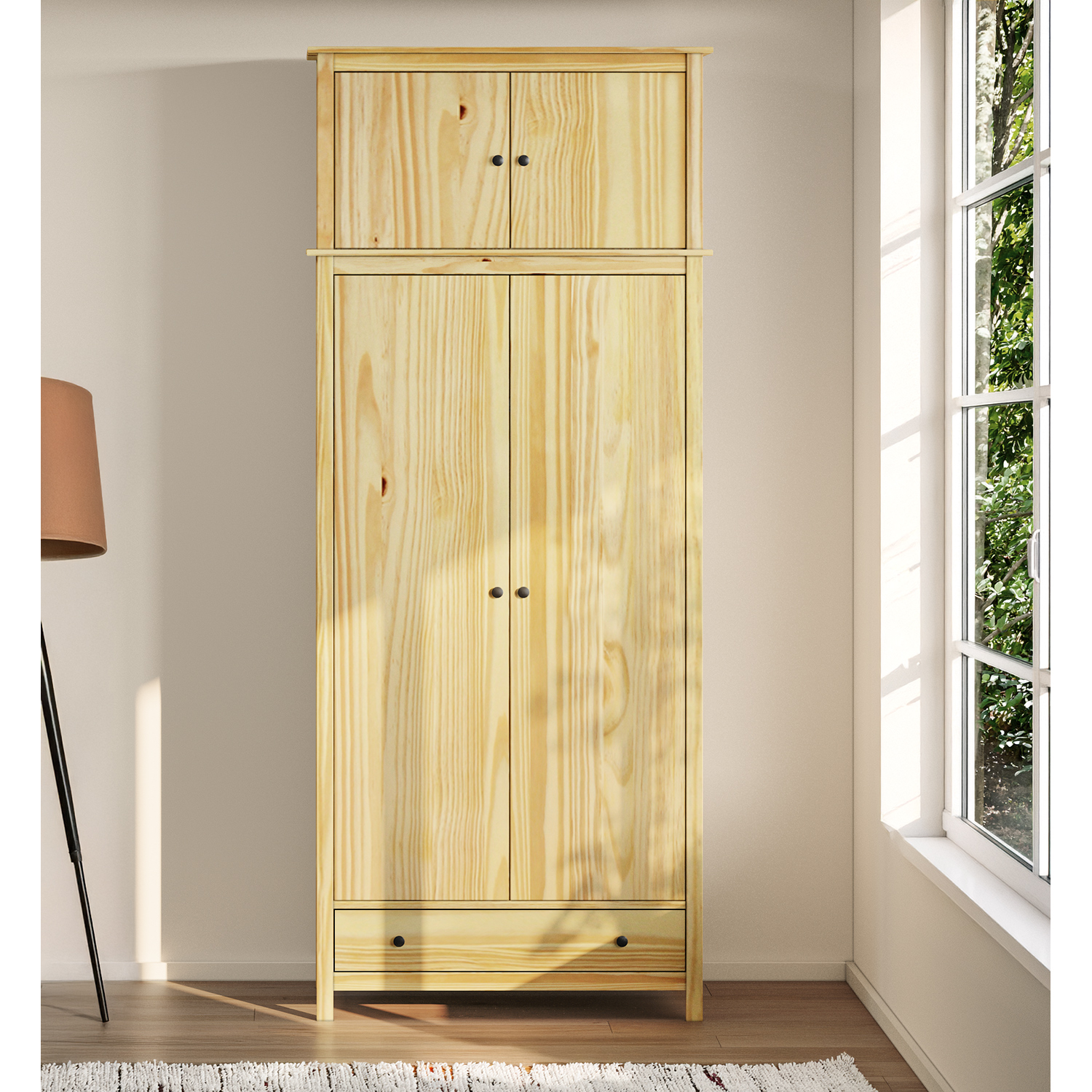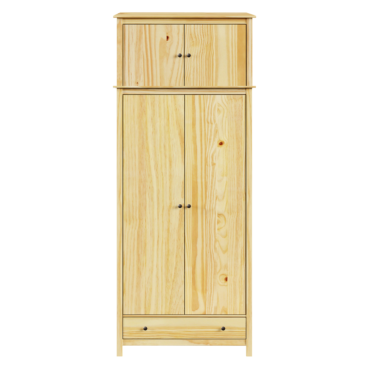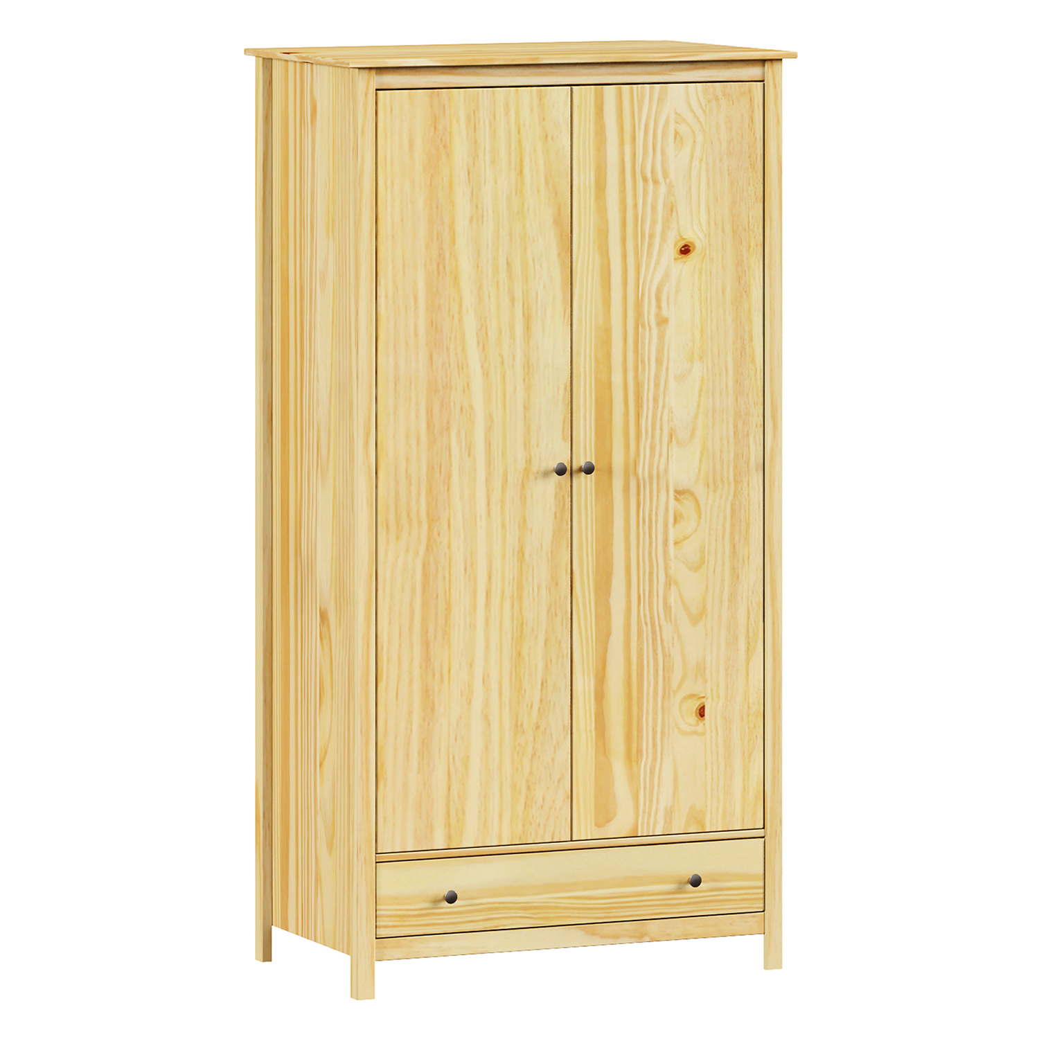 Der 2-türige Kleiderschrank TORINO ist der Beweis dafür, dass auch ein einfaches Möbelstück Charakter haben kann. Auf den ersten Blick fällt die natürliche Optik des massiven Kiefernholzes ins Auge. Die lackierte Oberfläche verleiht dem Holz einen warmen Ton und hebt seine Maserung hervor. Der Schrank wirkt ehrlich und stabil, ohne unnötige Verzierungen und Effekte. Alles ist für die Funktion da. Die Metallgriffe wirken nicht exzentrisch, sondern fügen sich in das Gesamtkonzept ein. Das kühle Metall kontrastiert mit dem warmen Holz und schafft ein Gleichgewicht, das nicht erzwungen wirkt. Im Inneren finden Sie eine Kombination aus Garderobenstange und Regal. Oben Kleiderbügel, unten Schornstein. Ideal für ein kleineres Schlafzimmer, einen Flur oder vielleicht ein Landhaus. Es passt mehr hinein, als es aussieht. Die Konstruktion ist solide und wird sich auch bei täglichem Öffnen nicht lockern. TORINO spricht die Sprache der ruhigen Handwerkskunst. Er wird die anderen Möbel im Raum nicht überwältigen, aber gleichzeitig wird er nicht wie eine anonyme Kiste dastehen. Er hat Form und Natürlichkeit. Wenn Sie auf der Suche nach einem Möbelstück sind, das nicht mit Lametta spielt, sondern ehrlichen Service und Langlebigkeit bietet, dann sind Sie hier genau richtig. Dieser Schrank macht sich nichts vor. Er ist genau das, was er sein soll.
