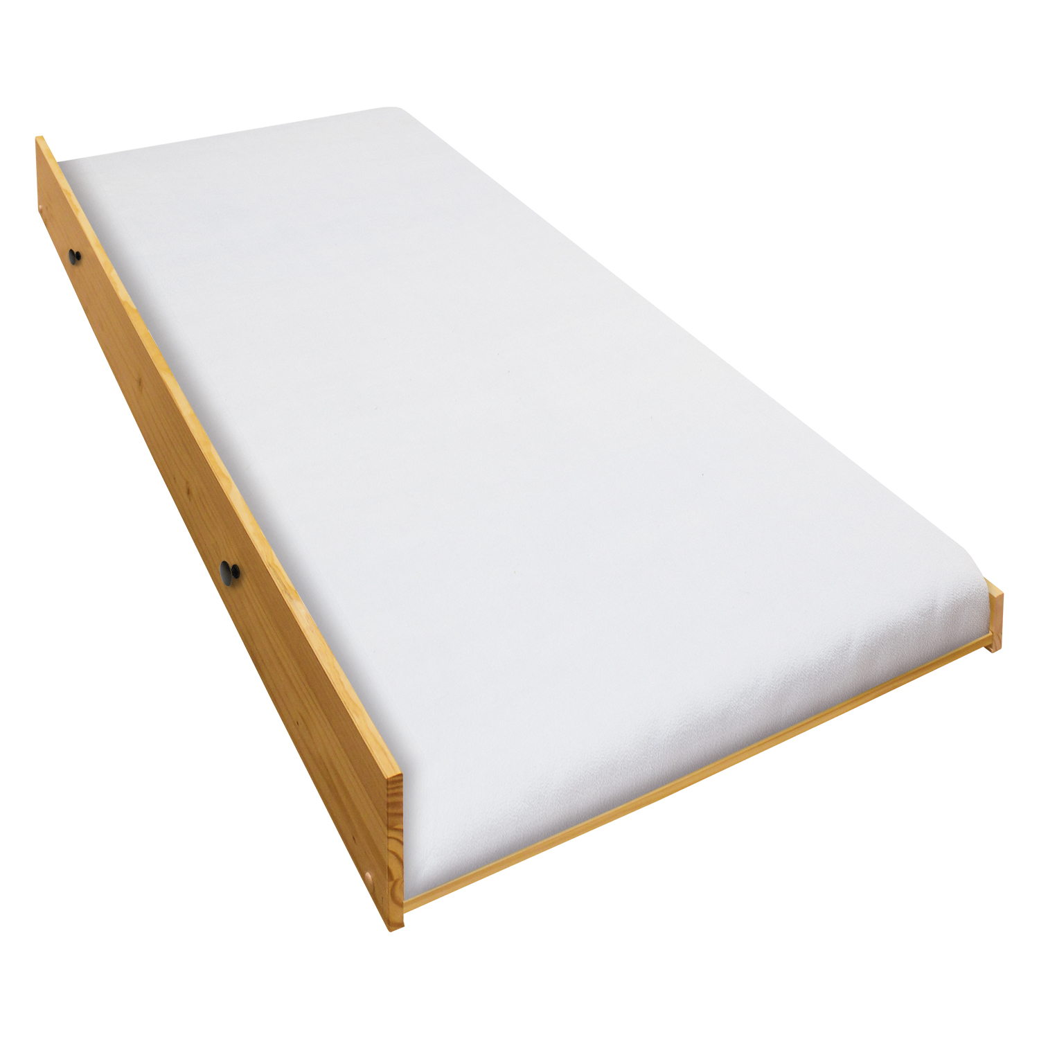 Das ausziehbare Bett TORINO 90 × 200 cm ist eine intelligente und wirtschaftliche Lösung für den täglichen Schlaf und unerwarteten Besuch. Dank des klaren Designs aus massiver Kiefer wirkt es solide und natürlich zugleich. Die lackierte Oberfläche hebt die Holzmaserung hervor und schützt sie gleichzeitig vor Beschädigungen. Es ist ein Möbelstück, das Ihnen jahrelang erhalten bleibt und weder sein Aussehen noch seine Funktionalität einbüßt. Das Bett bietet eine vollwertige Schlafgelegenheit, die eine komfortable Erholung garantiert. Dank des einfachen Auszugs ist das Bett in Sekundenschnelle aufgebaut. Die Metallgriffe sind ein praktisches Detail, das die Handhabung des unteren Bettes erleichtert. Es handelt sich nicht nur um ein Bett, sondern um ein praktisches System, das Platz spart und gleichzeitig vollen Komfort bietet. Es eignet sich für ein Kinderzimmer, ein Gästezimmer oder eine kleinere Wohnung, in der jeder Zentimeter zählt. Das Design ist einfach, aber nicht langweilig. Das natürliche Holz lässt sich leicht mit jeder Einrichtung kombinieren und sieht gemütlich aus. Das Ausziehbett TORINO ist praktisch, solide und dennoch optisch leicht. Es ist für alle geeignet, die keine Kompromisse zwischen Platz und Komfort eingehen wollen.