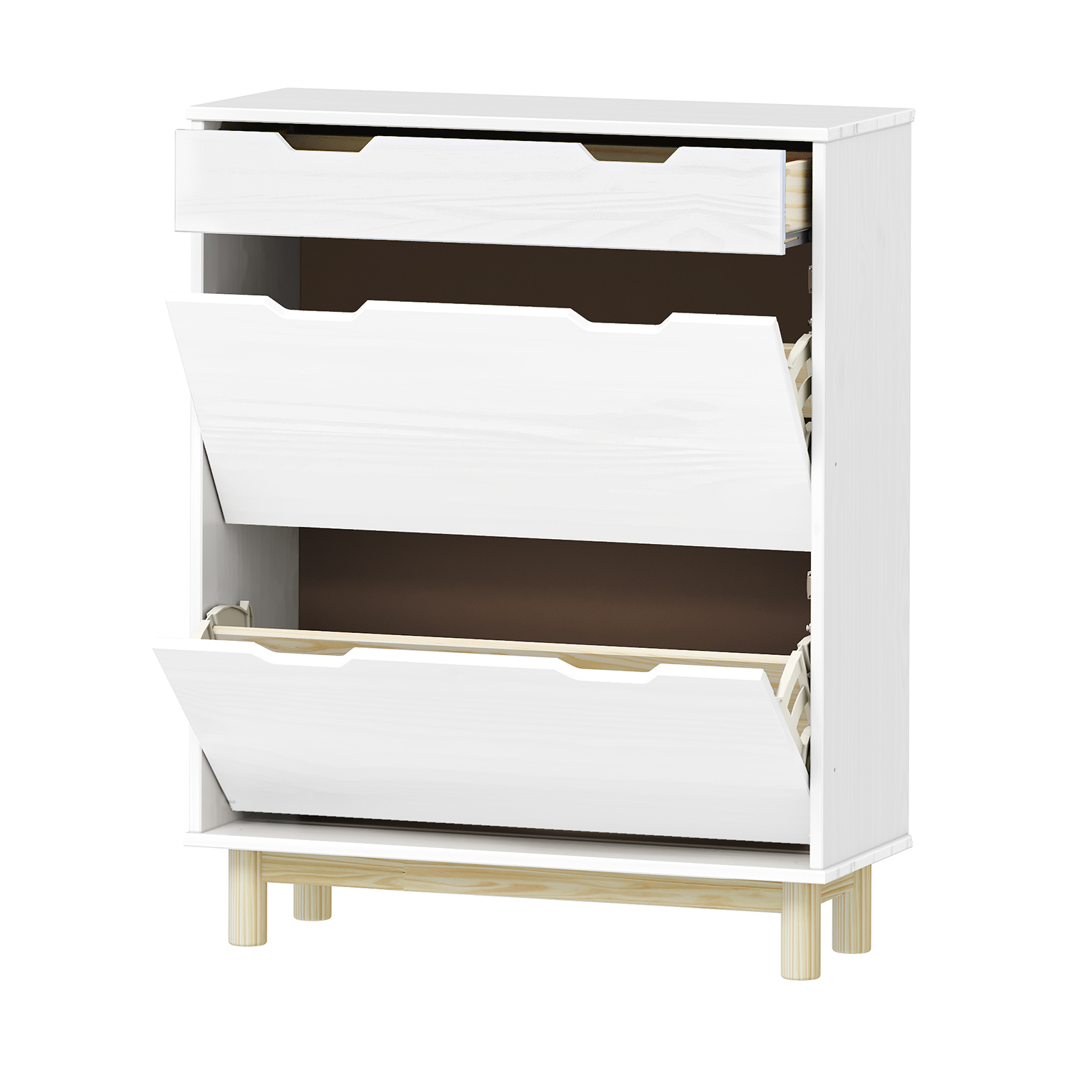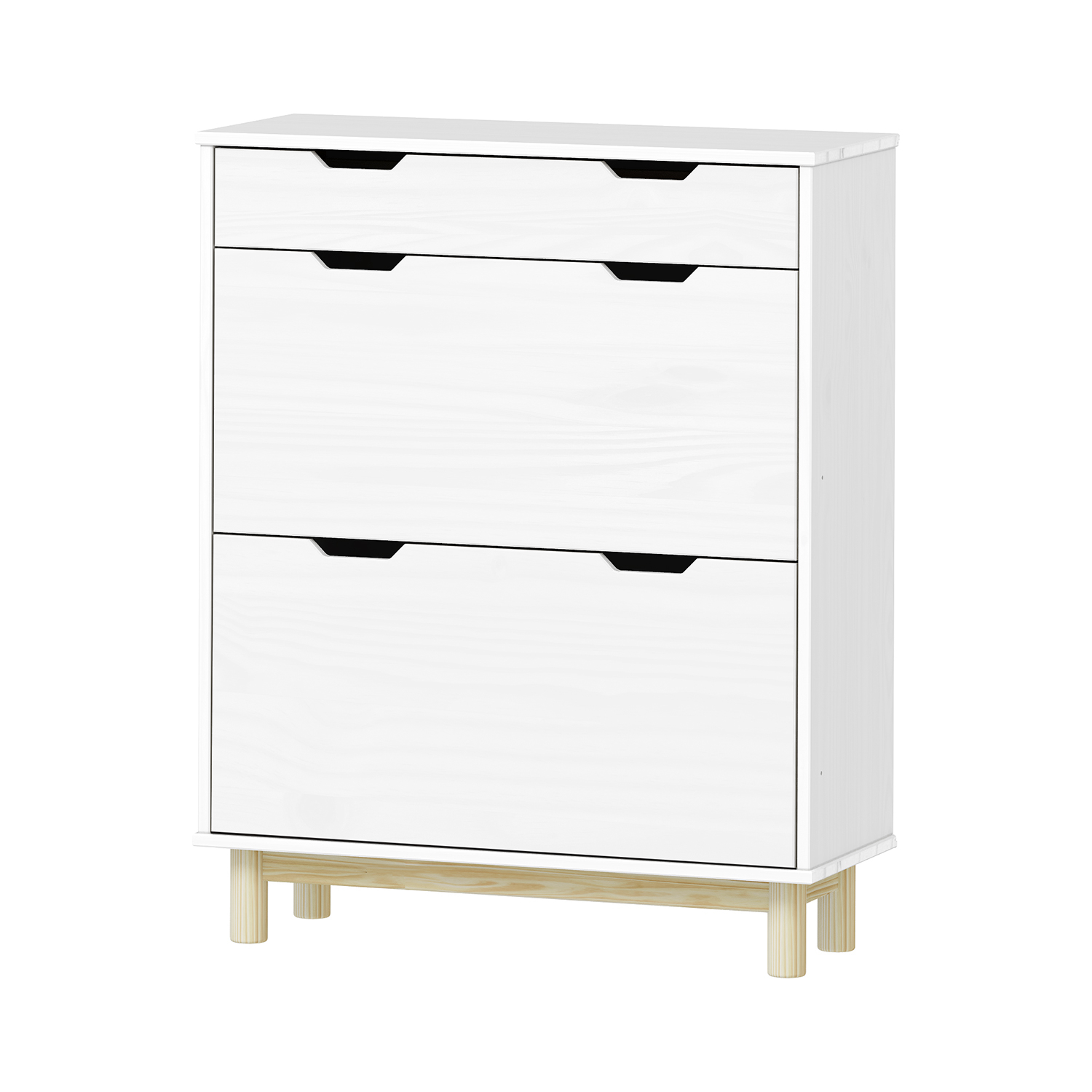 Produktcode: 324267Vmateriál masiv borovice, lakované provedení 1 zásuvka s kovovými pojezdy, 2 dvouřadé výklopy
