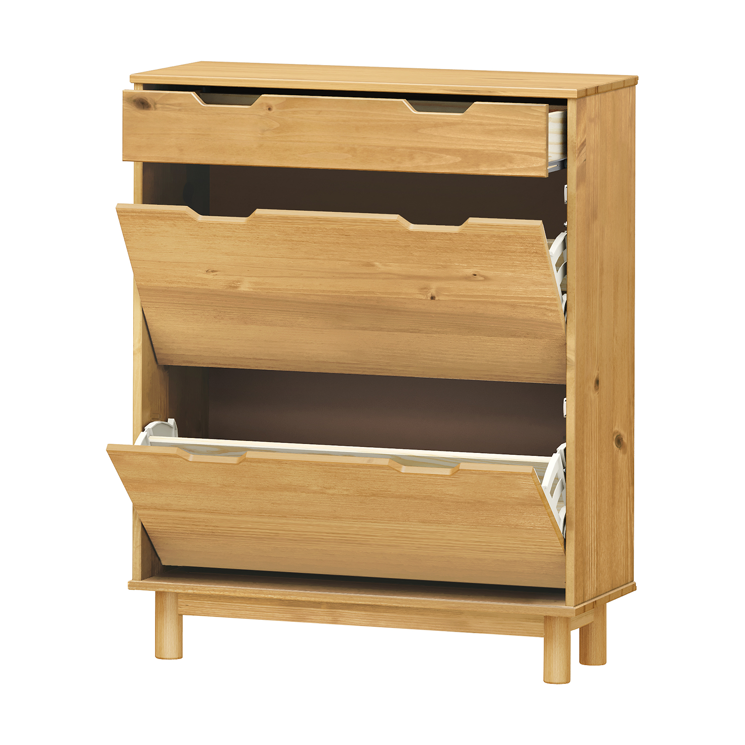 Produktcode: 324267Vmateriál masiv borovice, lakované provedení 1 zásuvka s kovovými pojezdy, 2 dvouřadé výklopy