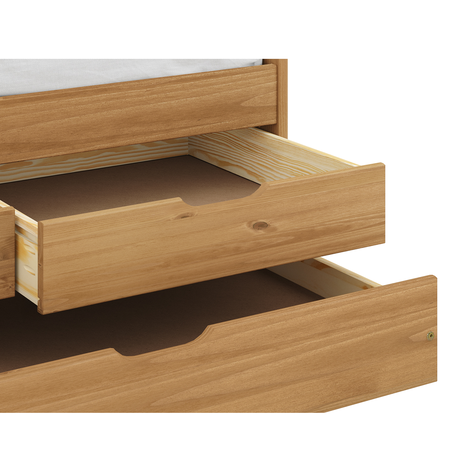 Produktcode: 8863VMaterial Kiefer massiv, gewachstes Finish Preis inklusive Rost (Holzlattenrost), Matratze nicht enthalten empfohlene Matratzengröße 90 × 200 cm (M2, M5, M9, M12, M24, M26) praktischer Stauraum unter dem Bett (5 Schubladen) inklusive