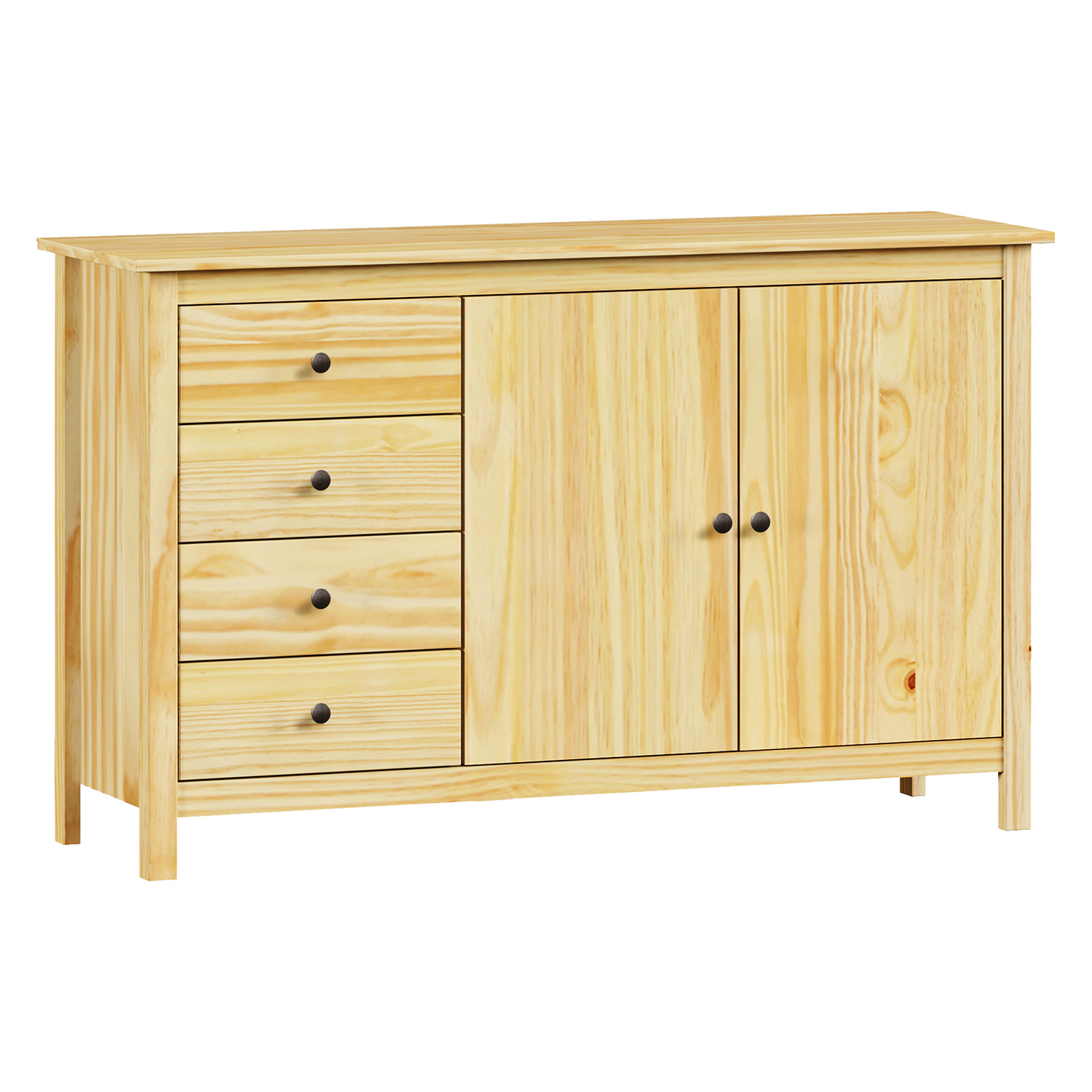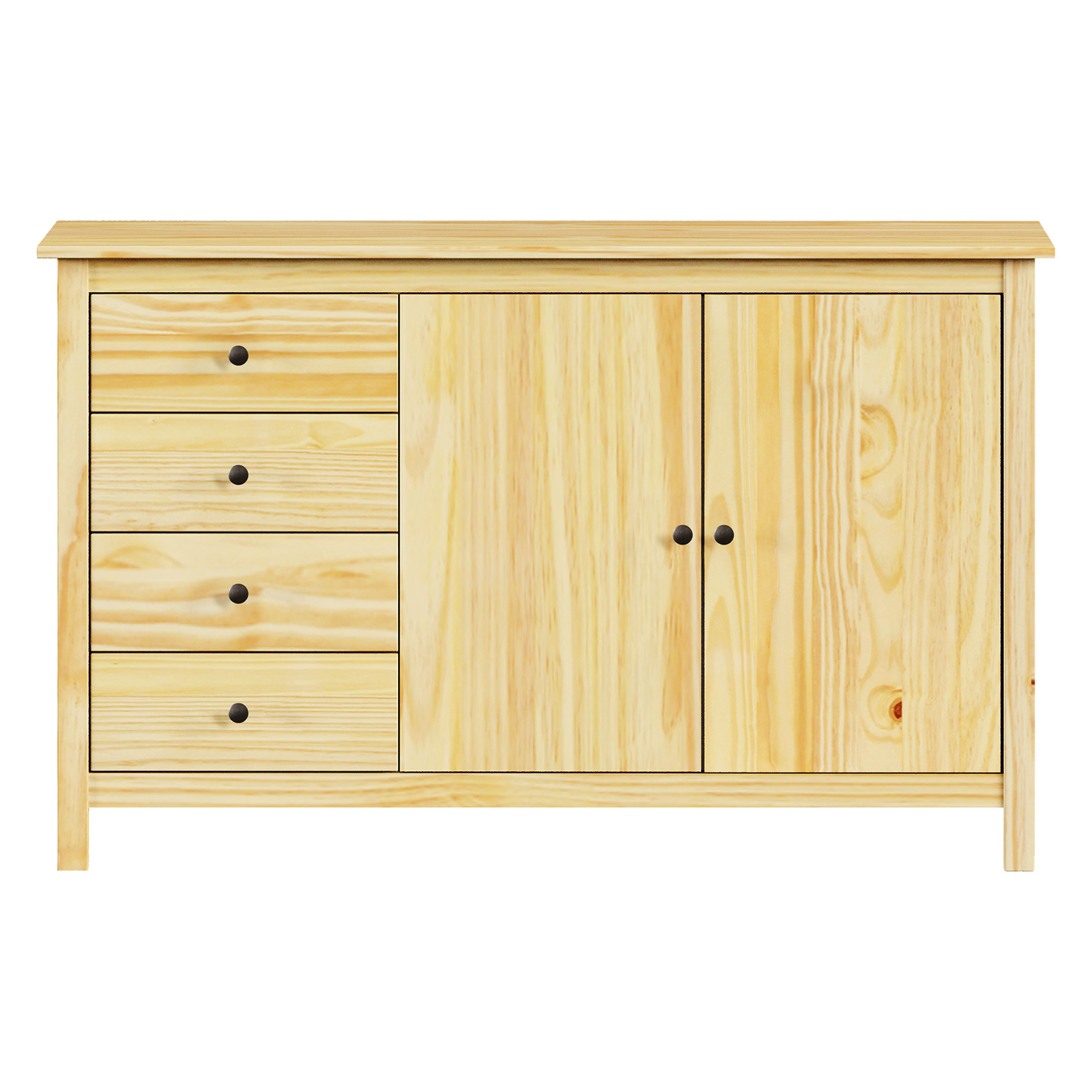 Produktcode: 8061KMaterial Kiefer massiv, lackiertMetallgriffe aus schwarzem Messing3 Schubladen mit Metallschienen, 3 massive Türen, 2 Einlegebödenmaximale Belastbarkeit in der Montageanleitung angegeben
