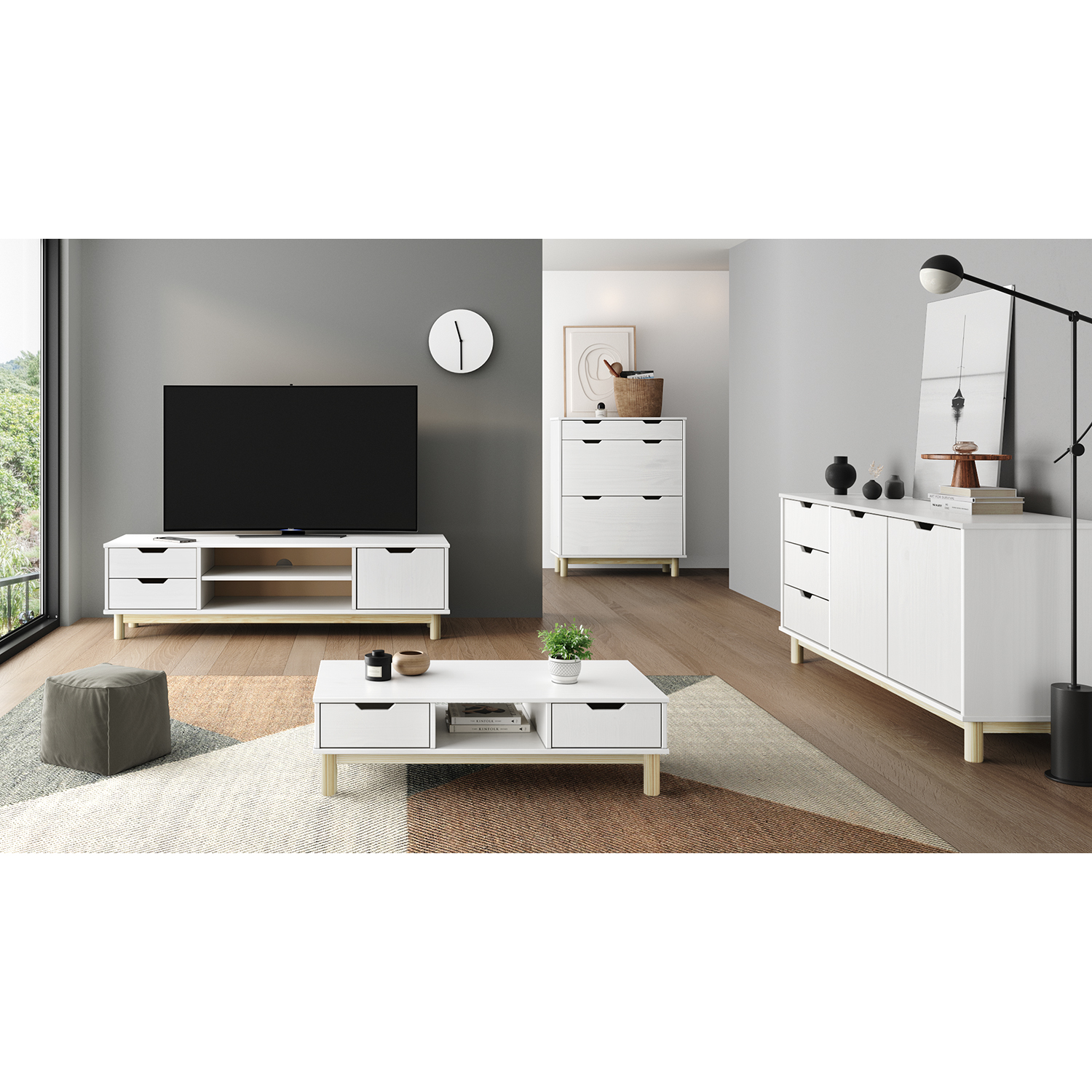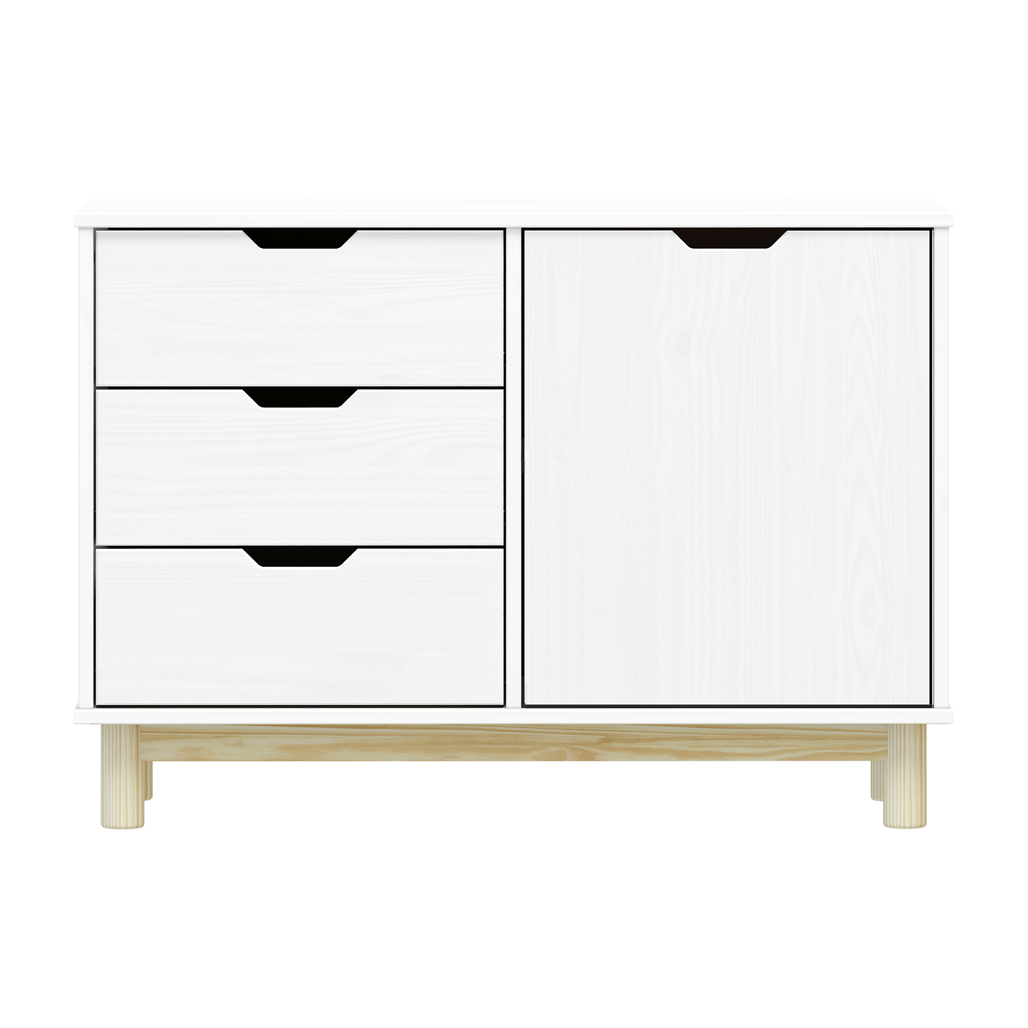 Produktcode: 324291Vmateriál masiv borovice, lakované provedení 3 zásuvky s kovovými pojezdy, 2 dvířka, 1 police