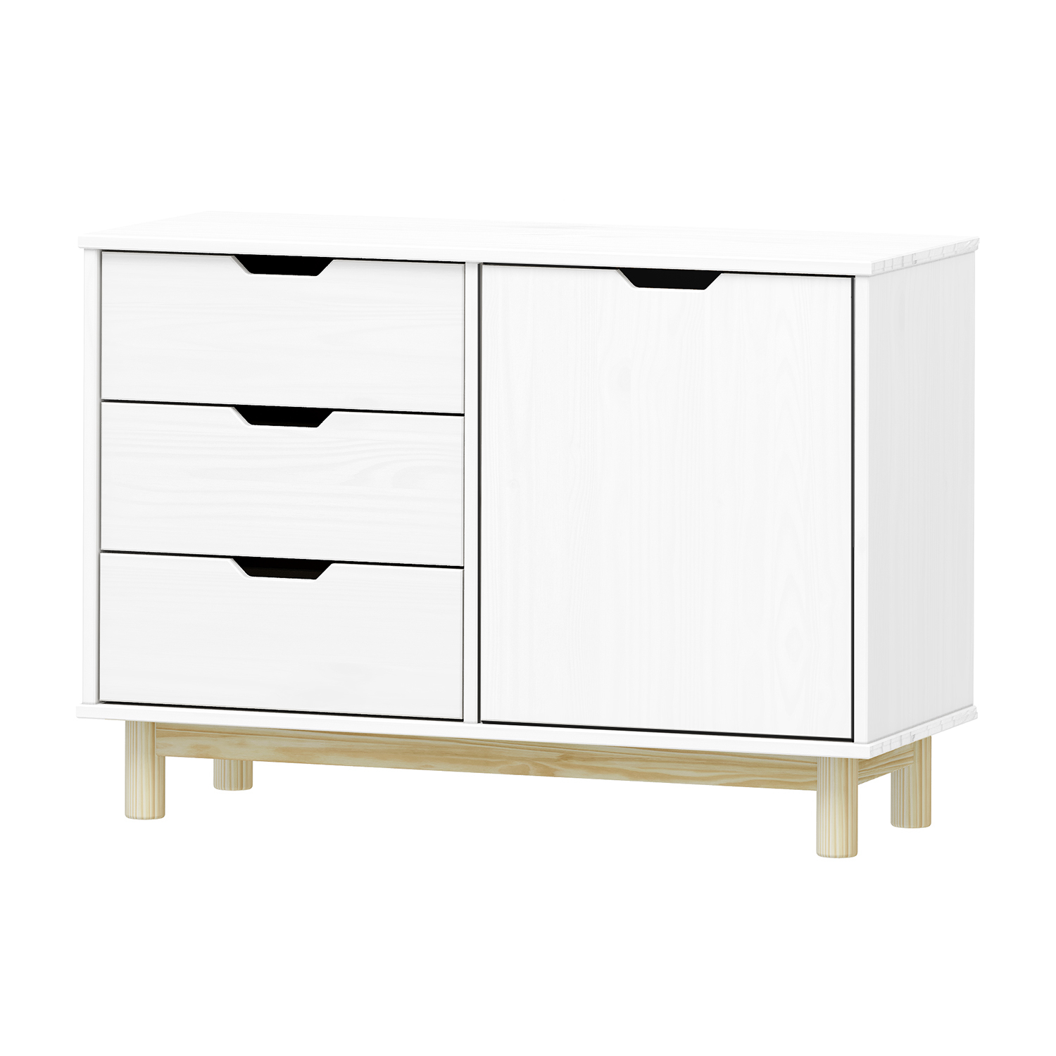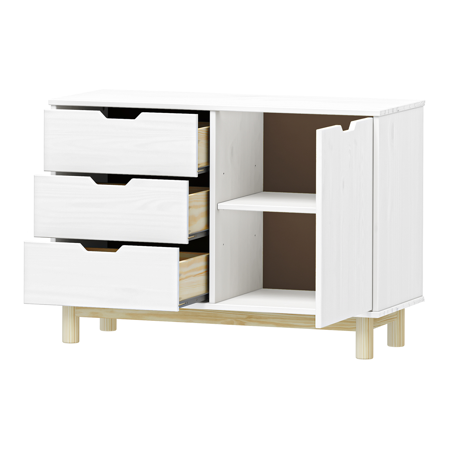 Produktcode: 32431Vmateriál masiv borovice, lakované provedení 3 zásuvky s kovovými pojezdy, 1 dvířka, 1 police
