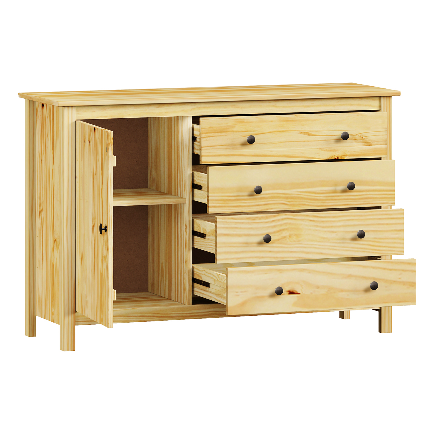 Produktcode: 68062Kmateriál masiv borovice, lakované provedení kovové úchytky v barevném provedení černěná mosaz 4 zásuvky s kovovými pojezdy, 2 plné dveře, 1 police
