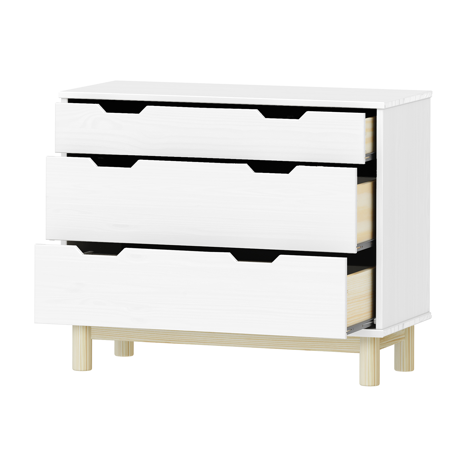 Produktcode: 32434materiál masiv borovice, barevné provedení bílý lak 3 zásuvky s kovovými pojezdy, 1 dvířka, 1 police