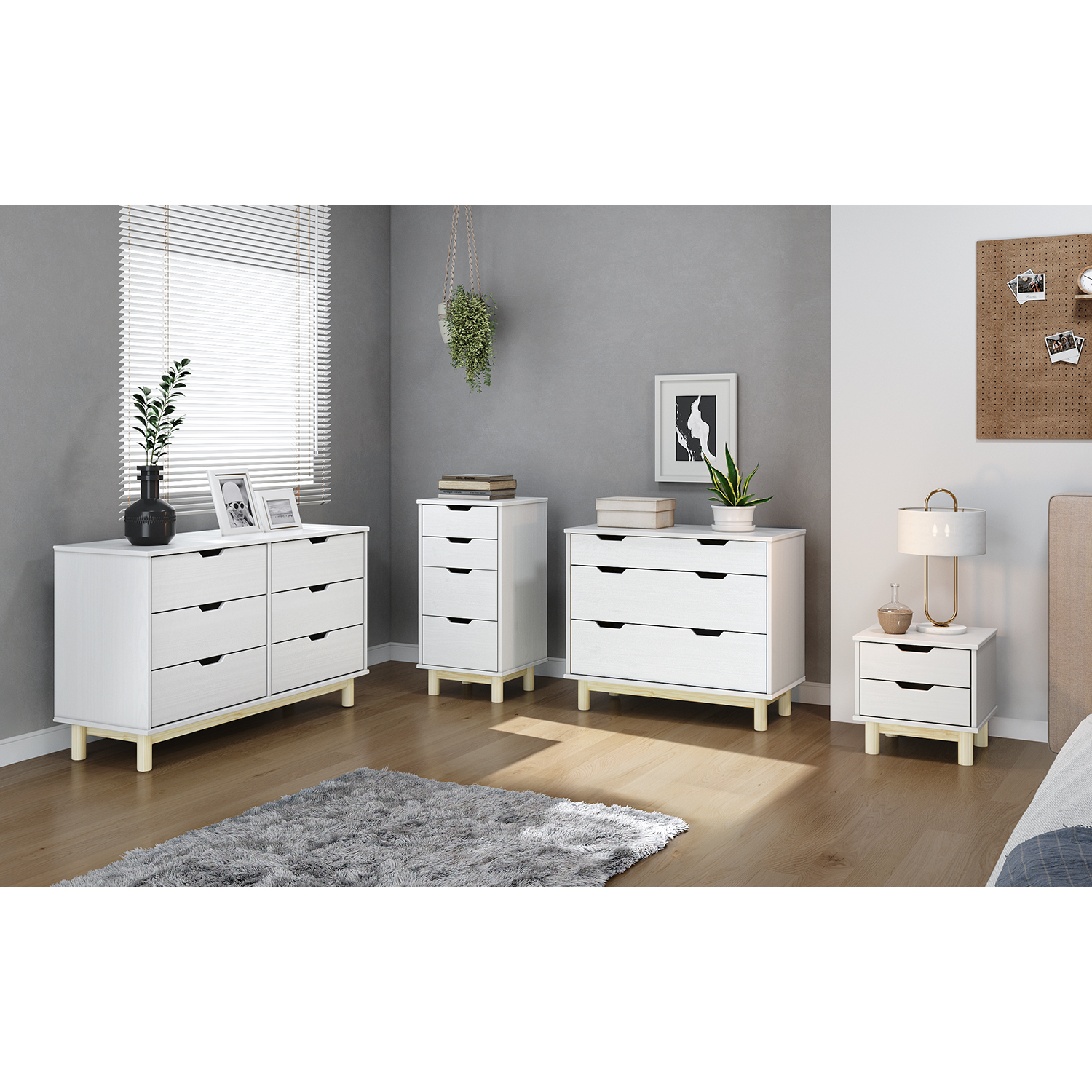 Produktcode: 324261materiál masiv borovice, barevné provedení bílý lak 2 menší a 2 větší zásuvky s kovovými pojezdy