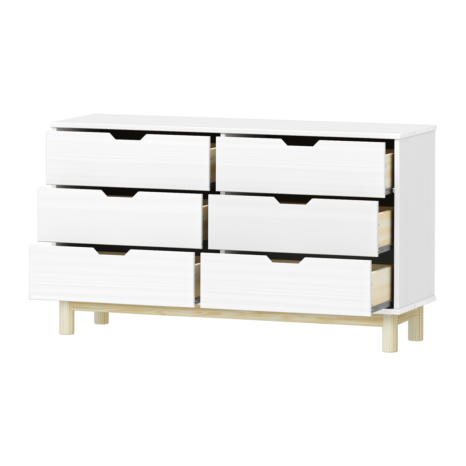 Produktcode: 324266Vmateriál masiv borovice, lakované provedení 6 zásuvek s kovovými pojezdy
