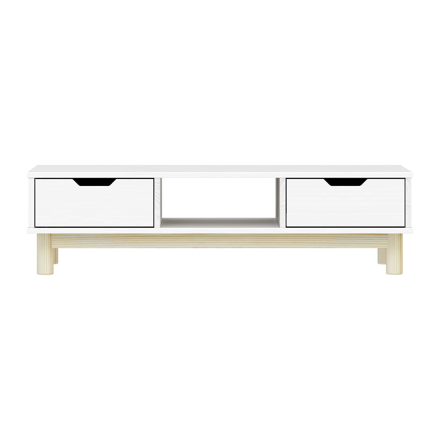 materiál masiv borovice, lakované provedení 2 zásuvky s kovovými pojezdy, 1 dvířka, 1 police otvor na protažení kabelů