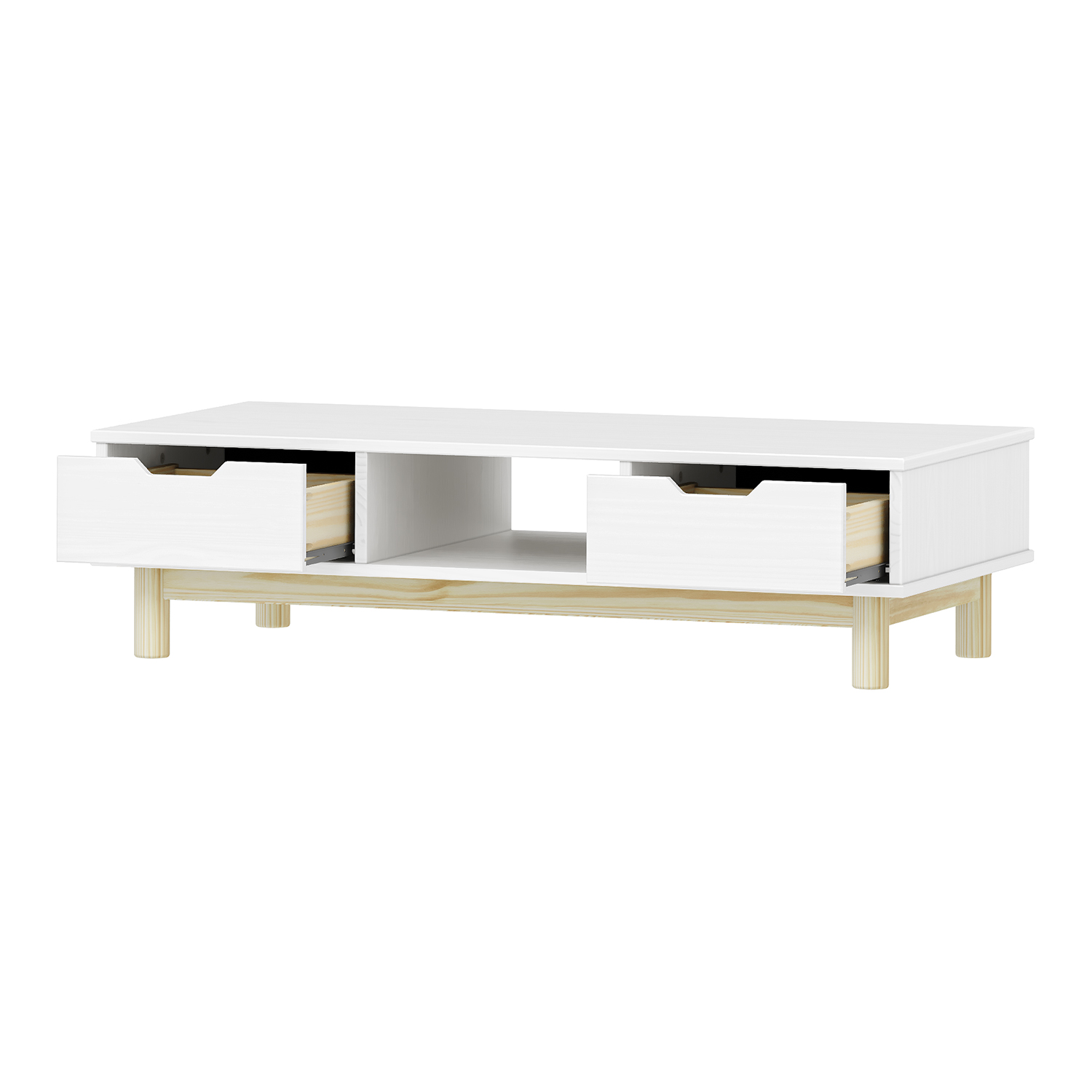 Produktcode: 324261materiál masiv borovice, barevné provedení bílý lak 2 menší a 2 větší zásuvky s kovovými pojezdy
