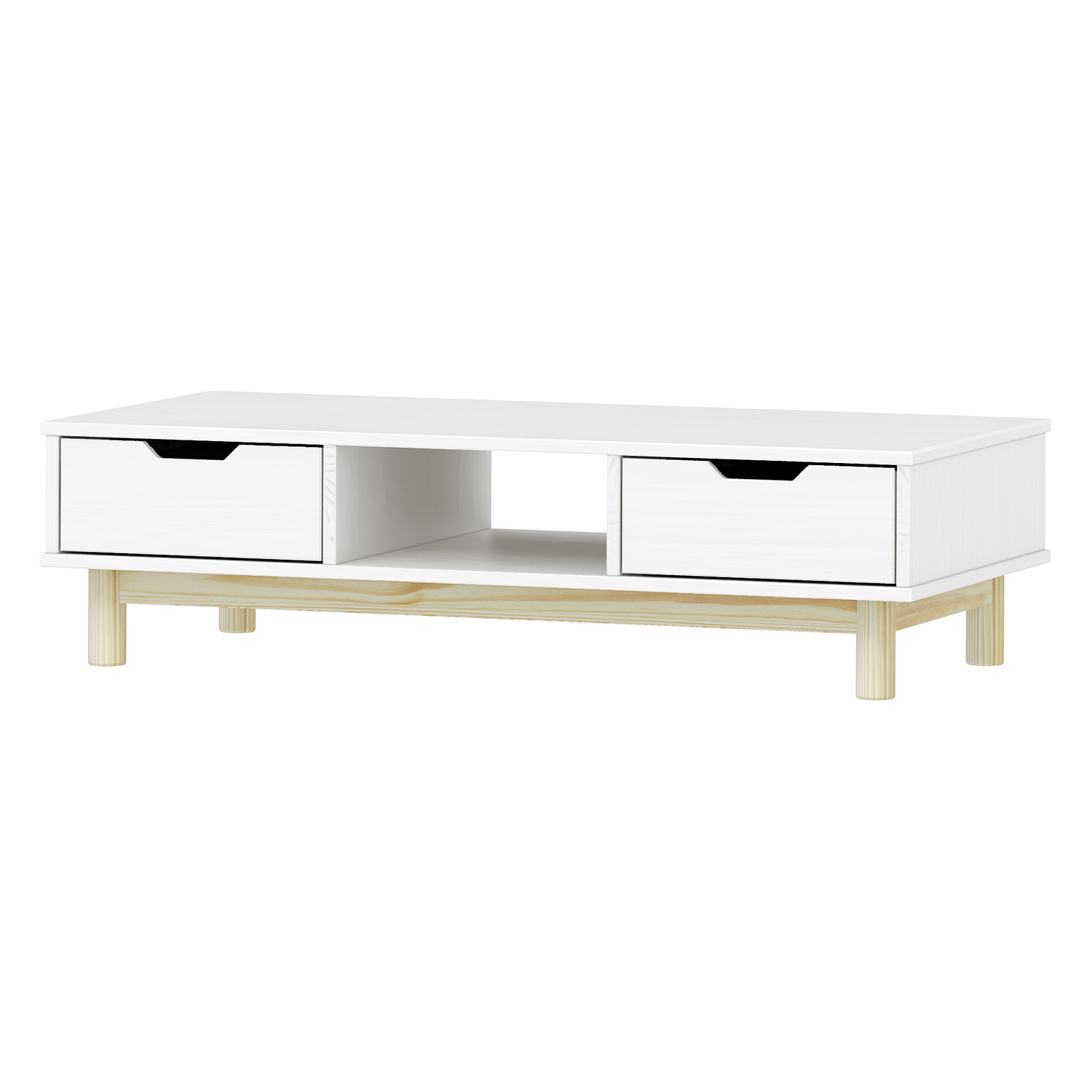 Produktcode: 324101Vmateriál masiv borovice, lakované provedení 2 zásuvky s kovovými pojezdy, 1 police otvor na protažení kabelů