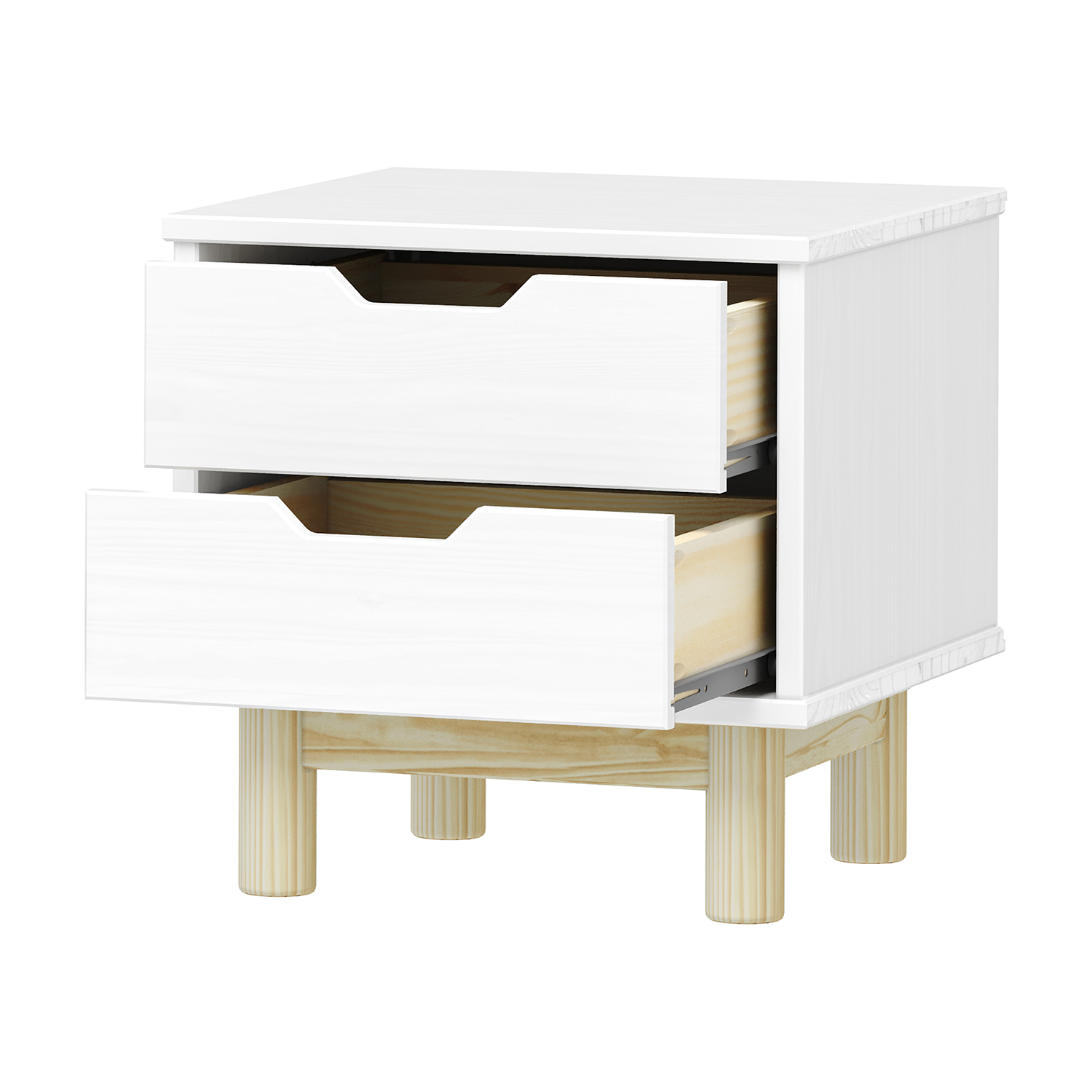 Produktcode: 324261materiál masiv borovice, barevné provedení bílý lak 2 menší a 2 větší zásuvky s kovovými pojezdy