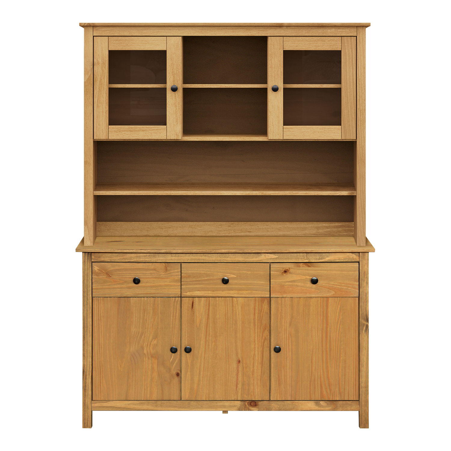 Produktcode: 8070VMaterial massives Kiefernholz gewachst in HonigtonMetallgriffe aus geschwärztem Messing2 Glastüren, 1 EinlegebodenAnrichte Erweiterung 8095V