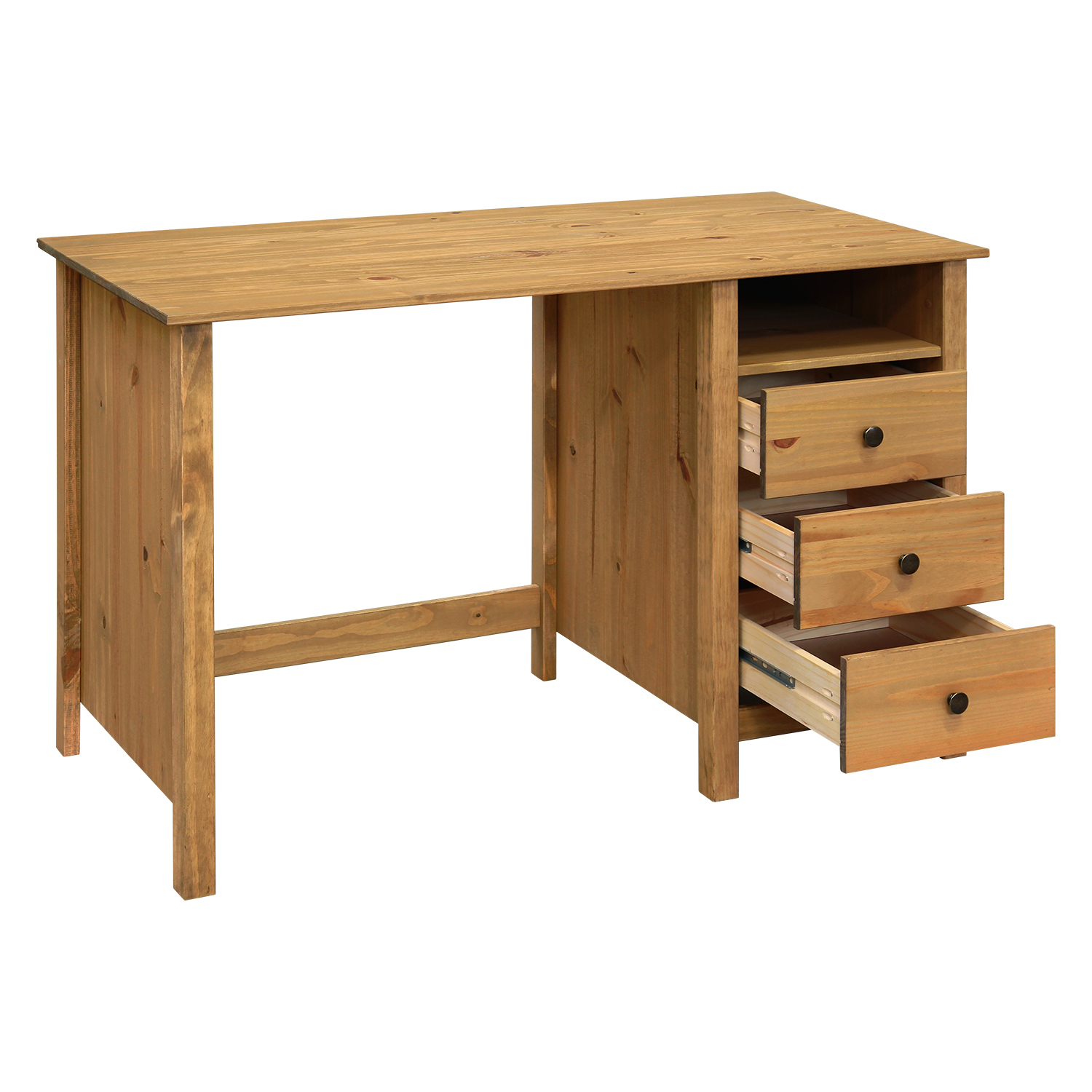 Sind Sie ein Liebhaber von Schlichtheit und Holzstücken? Dann wird der Schreibtisch TORINO die richtige Wahl für Sie sein. Sein Design wird Sie verblüffen. Das Material ist massives Kiefernholz. So hält der Schreibtisch wirklich lange und macht einen robusten Eindruck. Die Farbe ist ein Honigton und er ist mit Metallgriffen aus schwarzem Messing ausgestattet. Er hat auf der rechten Seite 3 Schubladen mit Metallschienen und darüber befindet sich noch ein kleines Regal. Der Schreibtisch bietet also viel Platz zum Ablegen von Dokumenten und anderen Arbeitsmaterialien. Die Tischplatte ist geräumig. Hier können Sie auf jeden Fall Ihren Computermonitor und anderes Zubehör unterbringen. Obwohl es sich um ein einfaches Stück handelt, wird Ihr Büro oder Arbeitszimmer mit diesem Schreibtisch einfach fantastisch aussehen. Sie brauchen einen guten Hintergrund, damit Ihre Arbeit reibungslos vonstatten geht. Dieser Schreibtisch wird Ihre Anforderungen sicher erfüllen.