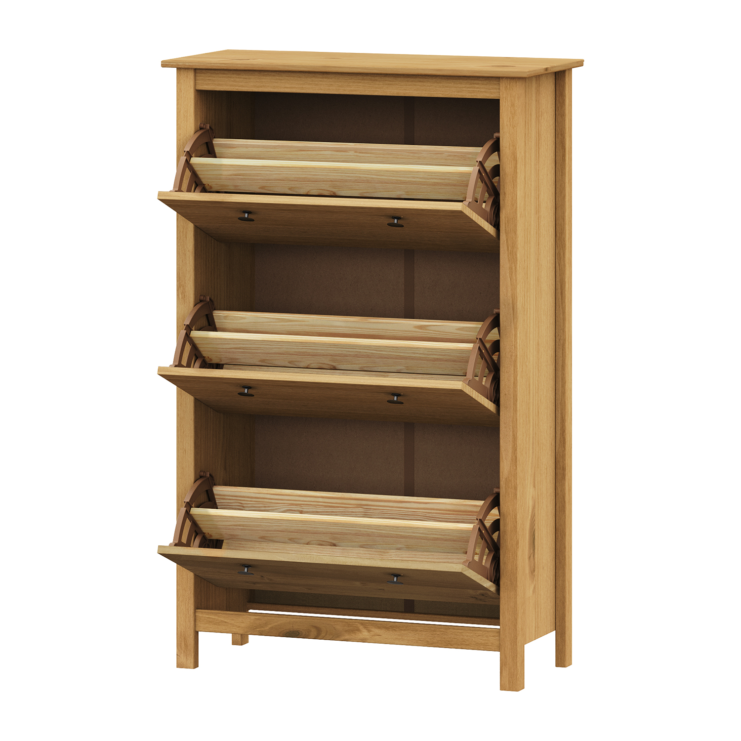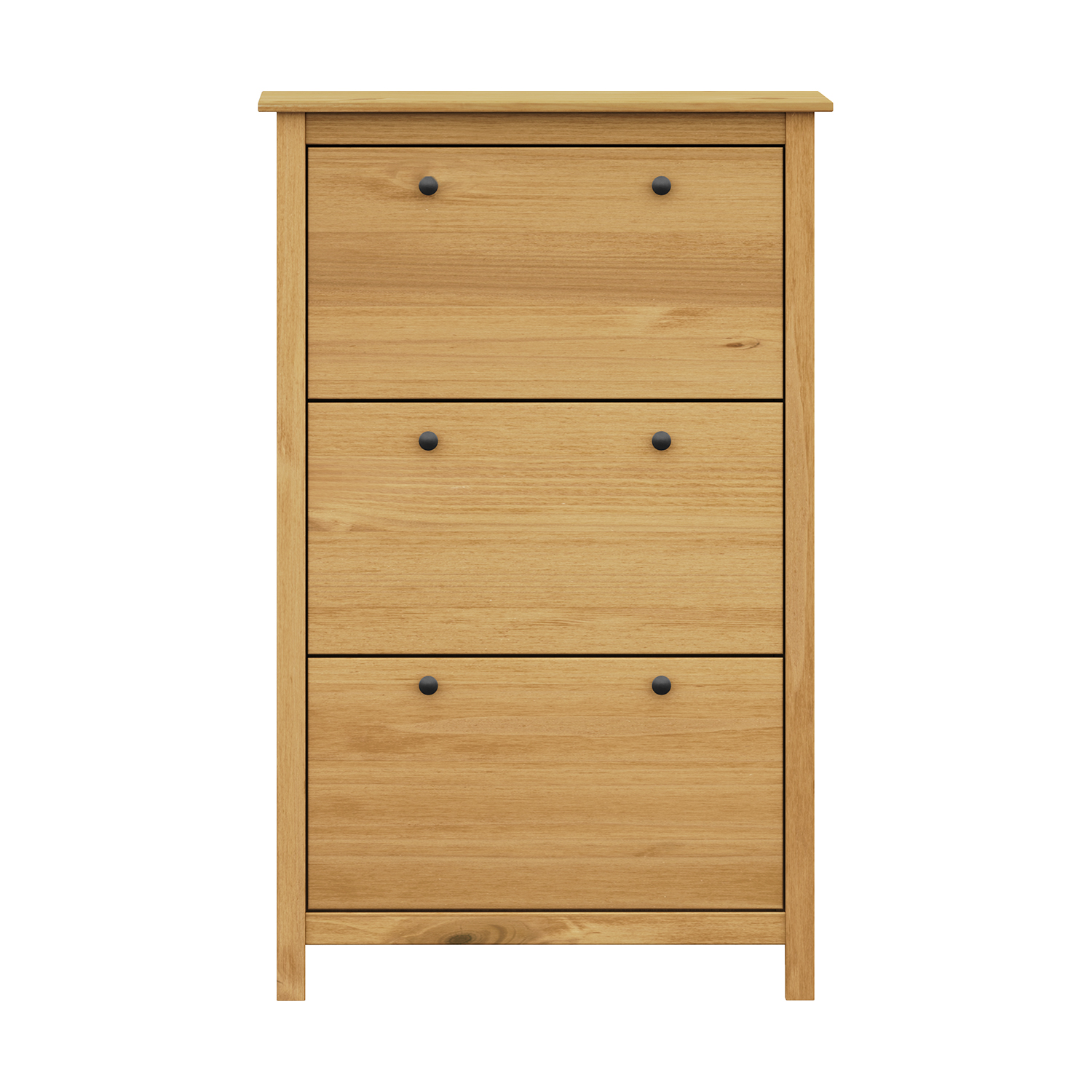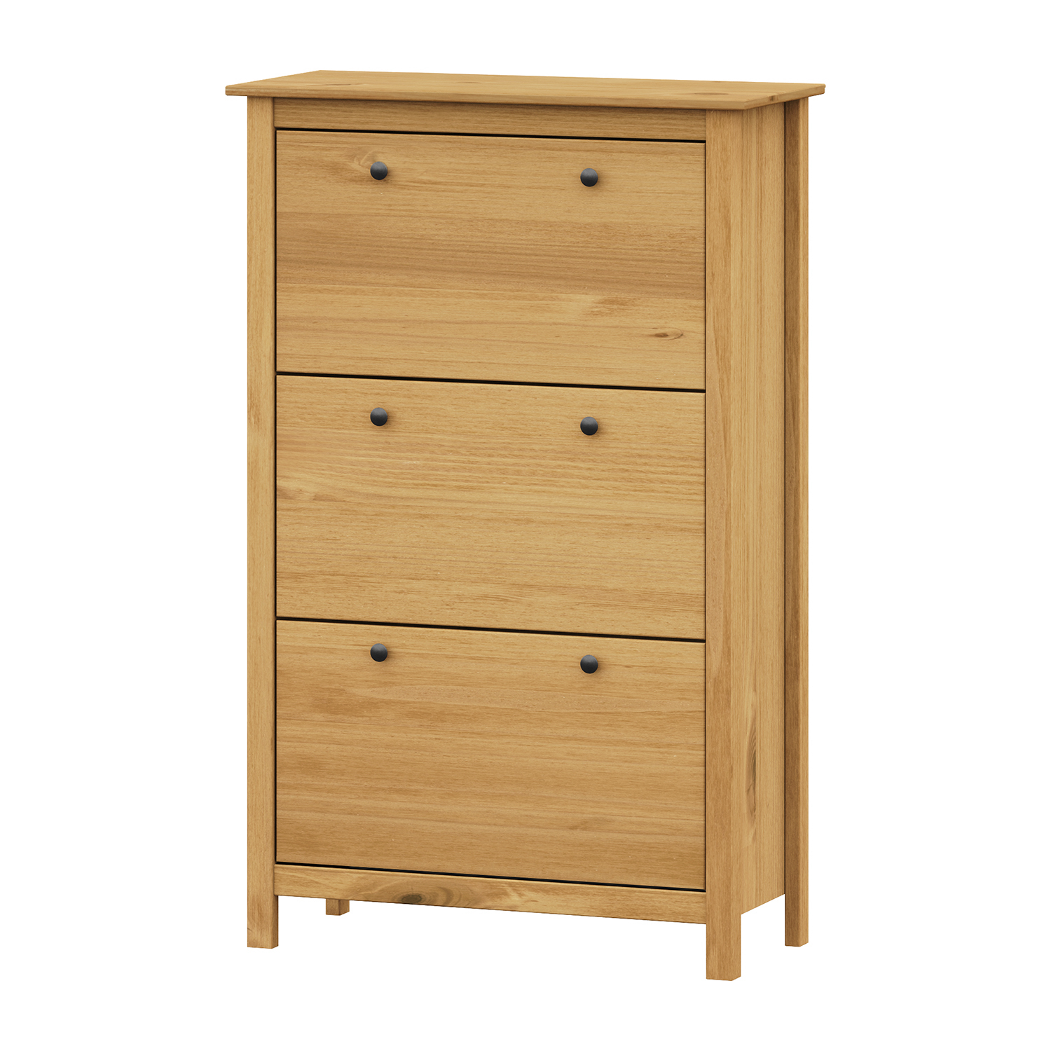 Das TORINO Wachs-Schuhregal ist die ideale Lösung für alle, die Funktionalität mit einem natürlichen Aussehen und einer gemütlichen Atmosphäre im Haus verbinden möchten. Es ist aus hochwertigem massivem Kiefernholz gefertigt, das sich durch Stärke, Haltbarkeit und eine schöne Holzmaserung auszeichnet. Das Wachsfinish unterstreicht die natürliche Struktur des Materials und verleiht ihm einen warmen Honigton. Dadurch wirkt das Schuhregal sehr natürlich und fügt sich harmonisch in jedes Interieur ein, egal ob es im rustikalen, ländlichen oder modernen Stil gehalten ist. Das TORINO Wachs-Schuhregal bietet viel Platz für die Aufbewahrung von Schuhen und anderen kleinen Gegenständen, die Sie in Ihrem Flur ordentlich aufbewahren möchten. Die praktische Deckplatte kann als Ablagefläche für Taschen und Accessoires dienen. Im Inneren sorgen Einlegeböden für Ordnung und einen leichten Zugriff auf die einzelnen Schuhpaare. Dank der robusten Verarbeitung und der stabilen Konstruktion können Sie sich darauf verlassen, dass das Schuhregal dem täglichen Gebrauch standhält. Die gewachste Oberfläche verleiht dem Möbelstück Eleganz und schützt es gleichzeitig vor Beschädigungen. Die Metallgriffe verleihen dem Schuhregal einen subtilen Hauch von Tradition und ergänzen sein natürliches Aussehen. Dieses Möbelstück verwandelt jeden Flur in einen Raum, der aufgeräumt, warm und einladend wirkt. Das TORINO Wachs-Schuhregal ist nicht nur ein Stauraum, sondern auch ein stilvolles Accessoire, das ein Stück Natur und ehrliche Handwerkskunst in Ihr Zuhause bringt.