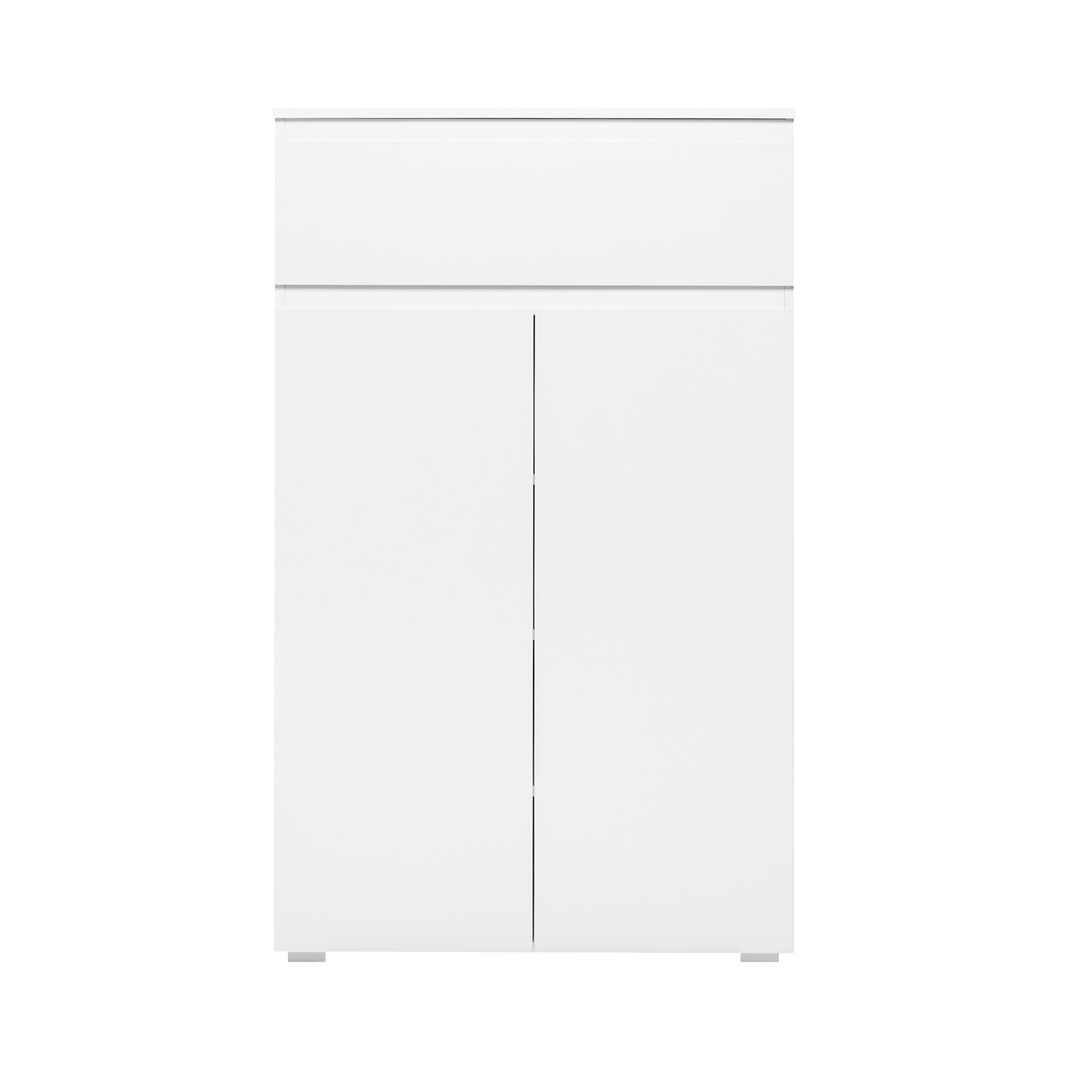 Leider hat man in kleinen Wohnungen nicht genug Platz für übergroße Möbel. Natürlich sind Schuhe, die an der Tür hängen, auch keine Lösung, ganz zu schweigen davon, dass Schuhe im Flur, auch wenn sie ordentlich gefaltet sind, den Gesamteindruck eines ansonsten aufgeräumten Raums stören. Lösen Sie das Problem der unordentlichen Schuhe ganz einfach und besorgen Sie sich ein modernes weißes Schuhregal mit Ablageflächen. Das Schuhregal IMAGE 3 in Weiß bietet Platz für all Ihre Schuhe, einschließlich Pumps, Stiefel und Hausschuhe für Besucher. Das zweitürige Schuhregal verfügt über drei variable Einlegeböden, auf denen Sie Schuhe in verschiedenen Größen stapeln können, sogar hohe Stiefel oder Stiefeletten. Das weiße, glatte Schuhregal hat außerdem oben eine breite Schublade mit Metallgriffen für Schlüssel und Zubehör.Wenn Ihnen das Schuhregal im Flur jedoch nicht ausreicht und Sie genügend Platz haben, können Sie es mit anderen IMAGE-Möbeln ergänzen, um einen sehr modernen Flur zu schaffen, der bereit ist, alle Arten von Besuchern zu empfangen.