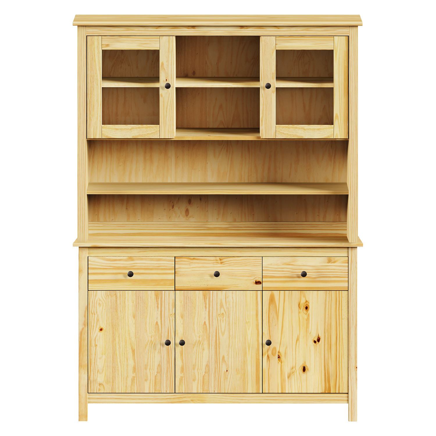Produktcode: 8096KSet aus Anrichte TORINO 8062K und Erweiterung TORINO 8063K Material Kiefer massiv, lackiertMetallgriffe aus schwarzem MessingAnrichte: 3 Türen, 3 Schubladen mit MetallschienenErweiterung: zwei GlastürenMaße der Anrichte (B/H/H) 129 × 40 × 80 cmAbmessungen der Erweiterung (B/H/H) 129 × 33 × 100 cm