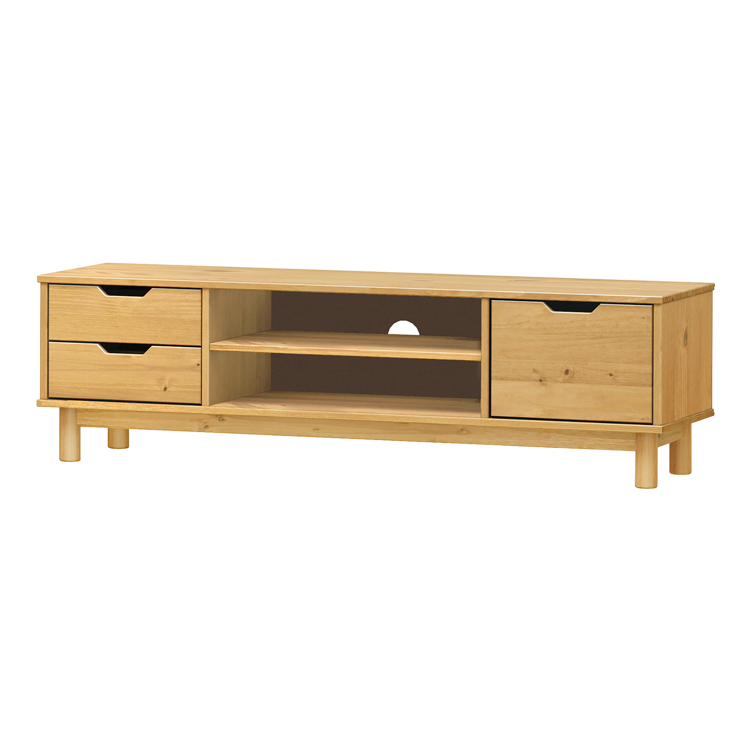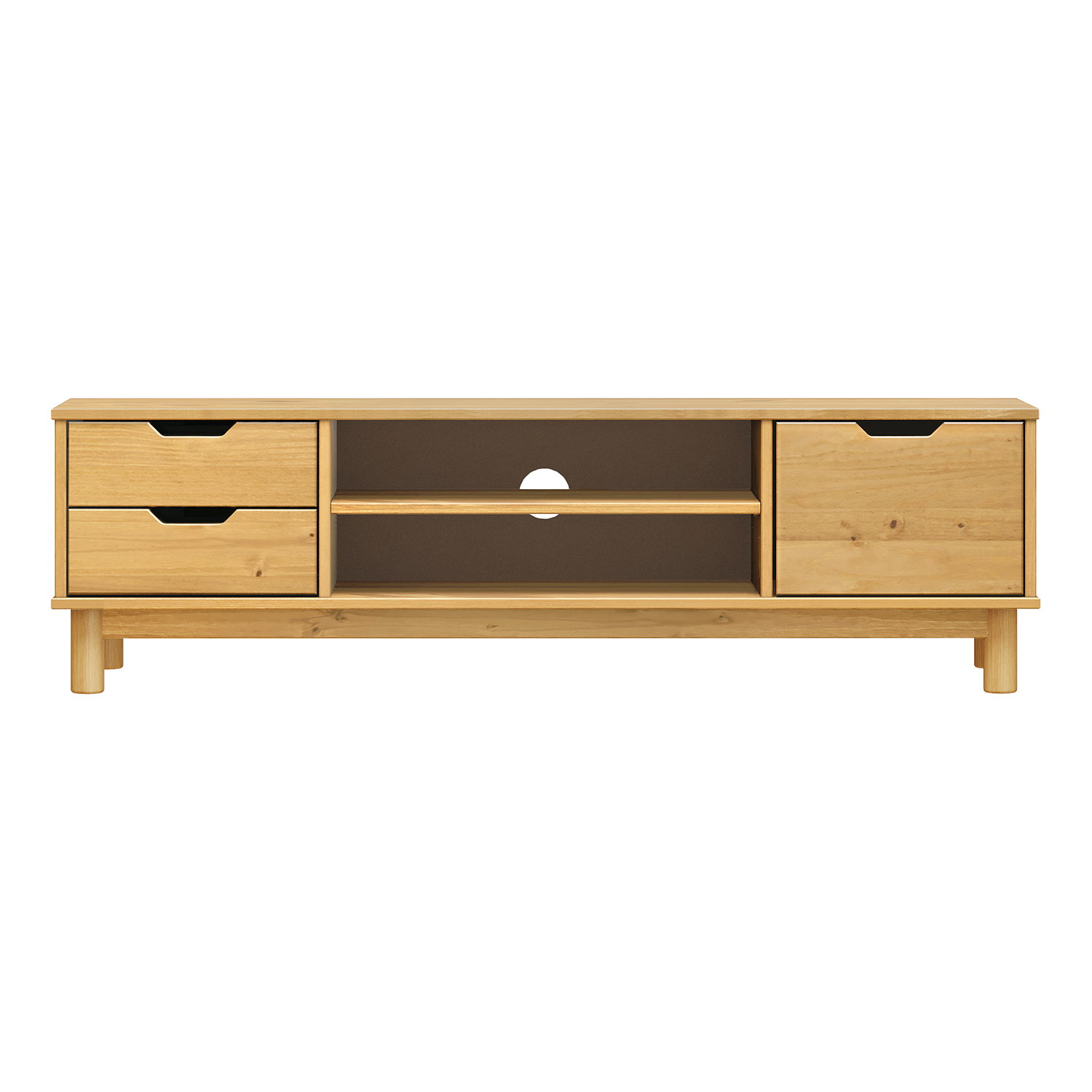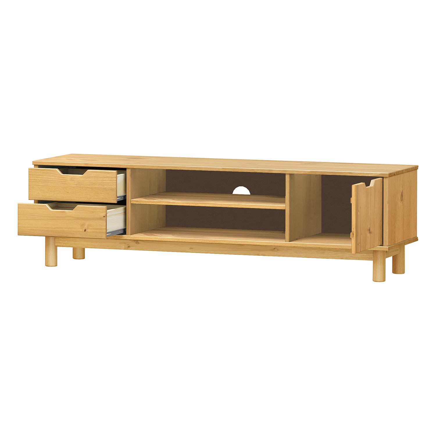 Tento TV stolek Bonito 2 je vyroben z masivu borovice a jeho povrch je ošetřen medovým voskem, který zdůrazňuje přirozenou krásu dřeva a dodává stolku teplý a příjemný vzhled. Vosk chrání dřevo a současně zachovává jeho přirozenou strukturu, takže každý stolek je jedinečný a získává autentický charakter. Konstrukce stolku je pevná a stabilní, což zajišťuje bezpečné umístění televizoru, multimediálních zařízení a dalších doplňků bez rizika nestability. Stolek disponuje praktickými úložnými prostory, které zahrnují jednu dvířkovou část a dvě zásuvky. Ty umožňují snadné ukládání dálkových ovladačů, kabelů, časopisů i dalších nezbytností, čímž pomáhají udržet obývací prostor uklizený a přehledný. Masiv borovice a voskovaný povrch vytvářejí harmonický kontrast mezi robustností a jemnou estetikou, který přináší do prostoru pocit tepla a komfortu. Design stolku kombinuje jednoduché a čisté linie, což umožňuje jeho snadné začlenění do různých interiérových stylů, od tradičního po moderní. Stolek je odolný vůči každodennímu používání a dlouhodobě si zachovává svůj elegantní vzhled. Medový odstín vosku dodává stolku přirozenou hloubku a vizuální zajímavost, která zpříjemňuje atmosféru obývacího pokoje. Tento TV stolek není pouze praktickým kusem nábytku, ale také výrazným estetickým prvkem, který zaujme návštěvy a vnese do prostoru pocit kvality a promyšleného designu. Díky promyšlené konstrukci a pečlivému zpracování je dlouhodobou investicí do pohodlného a stylového bydlení.