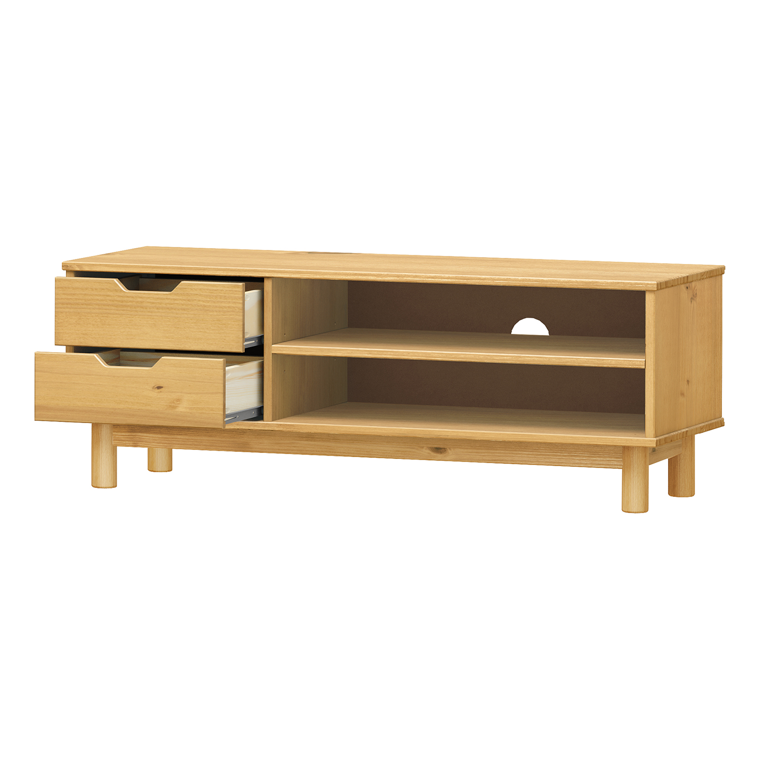 materiál masiv borovice, lakované provedení 2 zásuvky s kovovými pojezdy, 1 dvířka, 1 police otvor na protažení kabelů