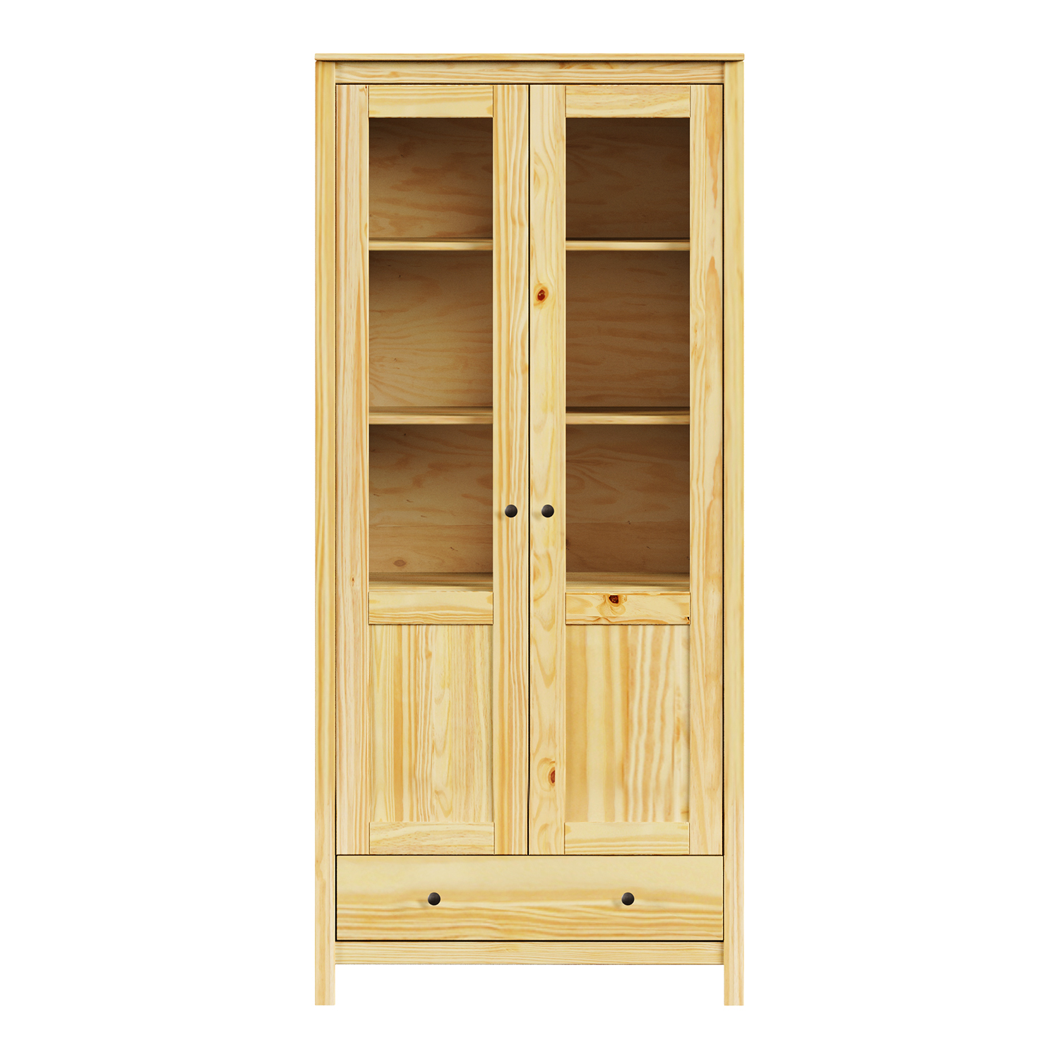 Die Vitrine TORINO mit zwei teilweise verglasten Türen und einer Schublade bringt eine subtile Ordnung und Ruhe in den Raum, ohne übermäßig aufzufallen. Sie ist aus massivem Kiefernholz gefertigt und mit einer Lackierung versehen, die die natürliche Maserung des Holzes hervorhebt und es gleichzeitig pflegeleicht macht. Das Klarglas im oberen Teil der Tür ermöglicht es Ihnen, Ihre Lieblingsbücher, -fotos oder -dekorationen elegant zu präsentieren und gleichzeitig vor Staub zu schützen. Die untere Schublade bietet einen diskreten Stauraum für Dokumente, Tischdecken oder kleine Accessoires, die Sie nicht offen zur Schau stellen möchten. Die Metallgriffe setzen einen subtilen Kontrast zum Gesamtbild und verleihen einen Hauch von industriellem Schick. Die Vitrine ist geräumig genug für den praktischen Gebrauch, aber auch in kleineren Räumen nicht zu überladen. Die Abmessungen sorgen dafür, dass sie in ein Esszimmer, ein Wohnzimmer oder ein Arbeitszimmer passt, ohne sperrig zu wirken. Dieses Möbelstück ist nicht nur eine gewöhnliche Aufbewahrungslösung. Es ist das Gefühl von Zuhause, das mit jedem ausgestellten Stück einhergeht. Es bietet keine unnötigen Effekte, aber es tritt auch nicht in den Hintergrund. Es kann einen Raum aufhellen und gleichzeitig die Gewissheit vermitteln, dass alles seinen Platz hat. Sie erinnert Sie jeden Tag daran, dass Einfachheit sowohl funktional als auch schön sein kann. Die Vitrine TORINO ist daher ein zuverlässiger Partner für alle, die einen ruhigen Raum mit dauerhafter Eleganz suchen.
