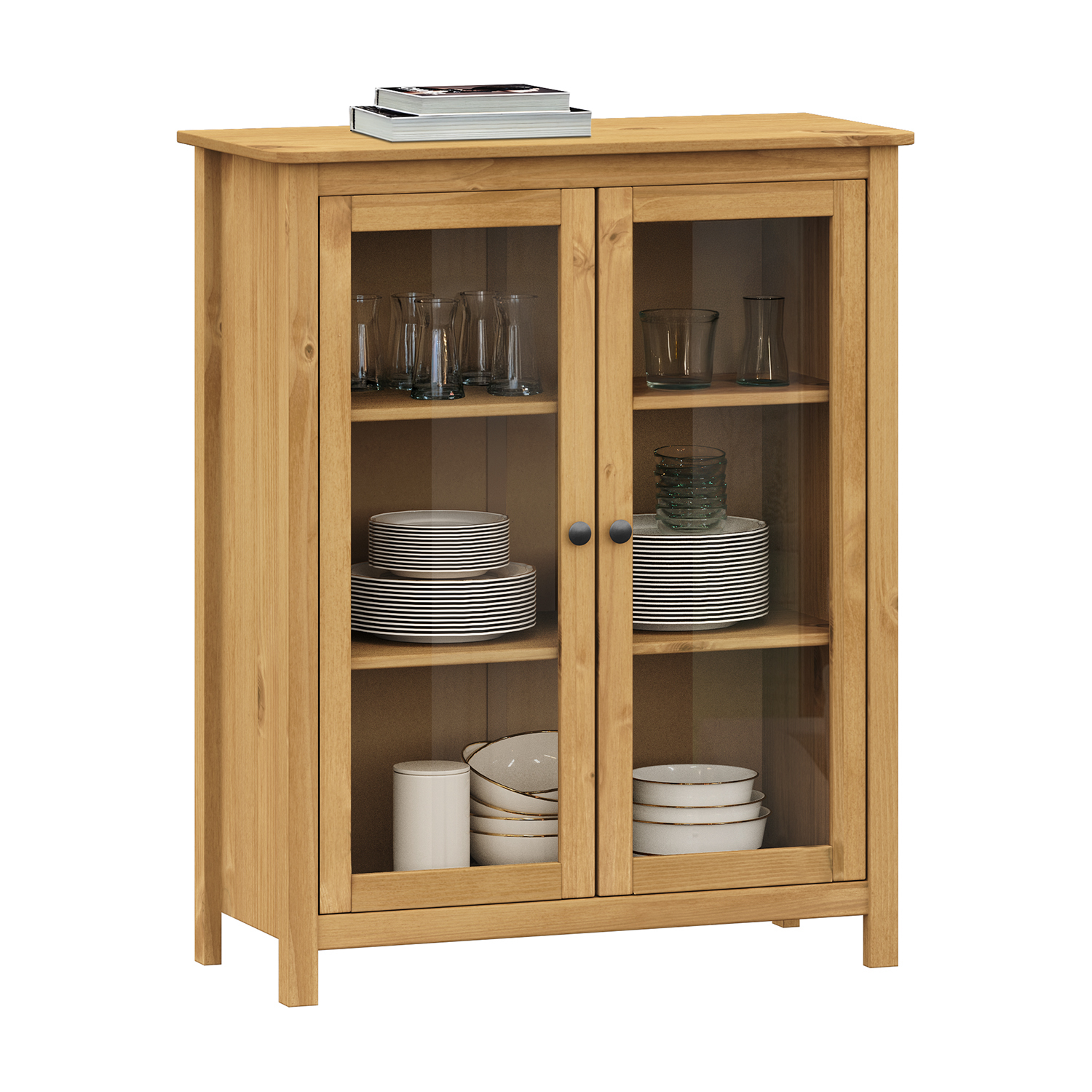 Die Vitrine TORINO mit zwei Türen bringt die ruhige Eleganz und ehrliche Schönheit des natürlichen Holzes in den Innenraum. Sie ist aus hochwertigem, massivem Kiefernholz gefertigt, das durch seine Stärke und natürliche Zeichnung besticht. Die Oberfläche ist mit Wachs behandelt, was den warmen Ton des Holzes verstärkt und seine Maserung hervorhebt. Dank der Wachsbehandlung behält die Vitrine ihre Langlebigkeit und Strapazierfähigkeit, während sie gleichzeitig leicht zu pflegen ist und immer noch frisch aussieht. Die Türen sind verglast, so dass Sie Ihr Lieblingsporzellan, Ihre Dekoration oder Ihre Erinnerungsstücke ausstellen können. Die Glasscheiben wirken leicht und lassen den Inhalt gut zur Geltung kommen, während der Massivholzrahmen ein Gefühl von Stabilität und Qualität vermittelt. Im Inneren befinden sich praktische Einlegeböden, die viel Platz bieten, so dass jeder Gegenstand seinen Platz hat. Schlichte Linien und eine natürliche, gewachste Oberfläche machen diese Vitrine zu einem vielseitigen Möbelstück, das sowohl in moderne als auch in klassische Umgebungen passt. Sie kann den Charakter eines rustikalen Esszimmers unterstreichen, passt aber ebenso gut in ein minimalistisches Wohnzimmer. Massivholz bringt Wärme in die Wohnung und verleiht dem Raum Gemütlichkeit, wo immer Sie die Vitrine aufstellen. Die Vitrine TORINO ist nicht nur eine praktische Aufbewahrungslösung. Sie wird zu einem unverwechselbaren Element des Interieurs und zu einem Ort, an dem Erinnerungen und das tägliche Leben zusammenkommen. Seine natürliche Schönheit, seine Zuverlässigkeit und seine sorgfältige Verarbeitung machen ihn zu einem Möbelstück, das auch nach jahrelangem Gebrauch seinen Wert behält.